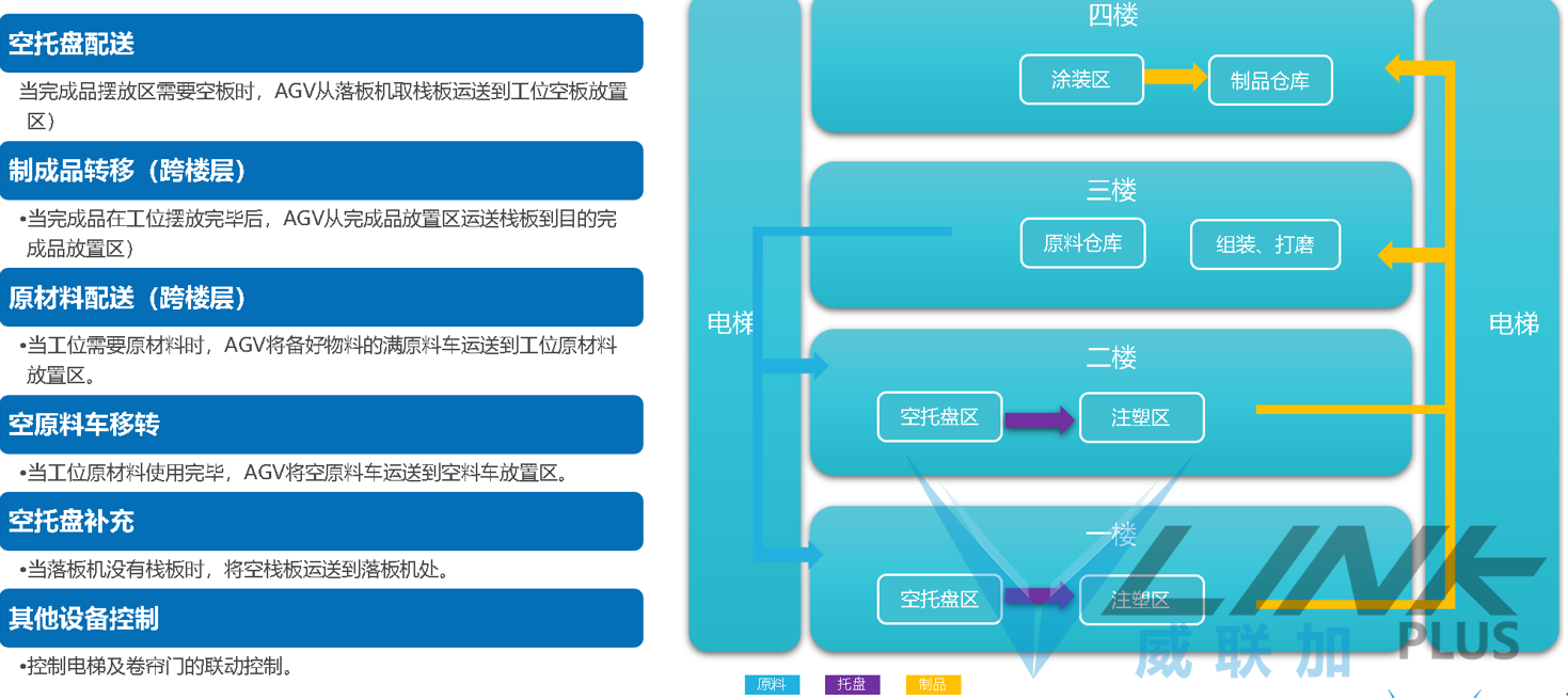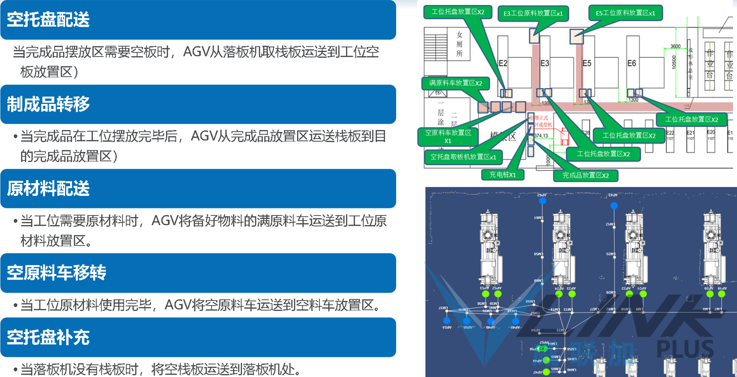 用AGV调度系统(VConn)完成物料计划下发,现场叫料之间的系统闭环,考虑到异常送料需求,系统保留人工呼叫接口,可以快速与第三方系统或设备对接。